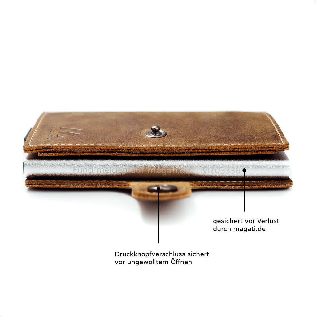 Für das Gewissen aller Sicherheitsbewussten bieten wir für dieses Wallet unseren 365 Tage kostenlosen Fundservice an. Sobald du dein MAGATI-Produkt erhalten hast kannst du dieses optional aktivieren. Nach Ende der kostenlosen Laufzeit endet unser Fundservice automatisch.